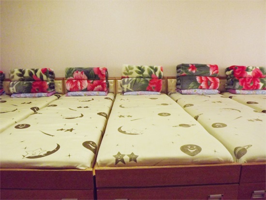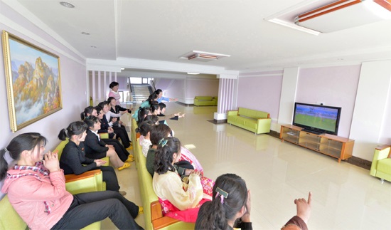 ピョンヤンのテドン川*1の辺に位置している金正淑ピョンヤン紡織工場に労働者のための寮があります。この寮は、色々な便益サービス施設が立派に整えられ、労働者の宮殿、労働者のホテルとも呼ばれています。この寮には、敬愛する最高指導者金正恩委員長の恩情が込められています。