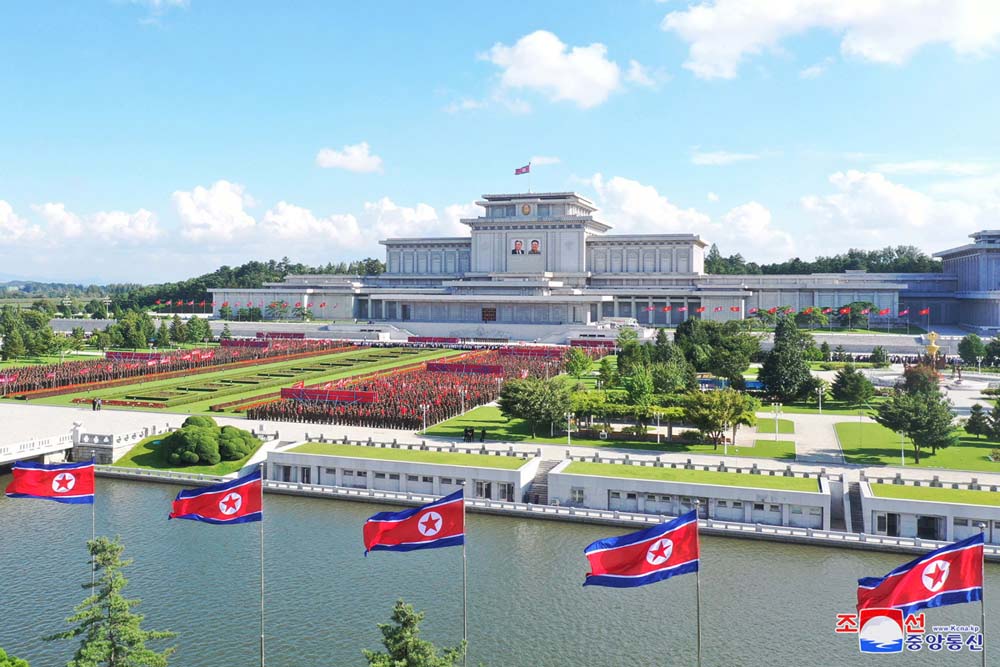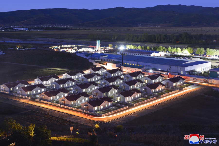 首都の党員たちは9月8日、偉大な金日成主席と偉大な金正日総書記が生前の姿で安置されたクムスサン太陽宮殿*3の広場で忠誠を誓い、被害復旧現場に向かいました。それ以来、70日間余り、党員師団は数百戸の平屋、低層住宅を建設し、いかなる水害にもびくともしないよう道路と河川を整備しました。