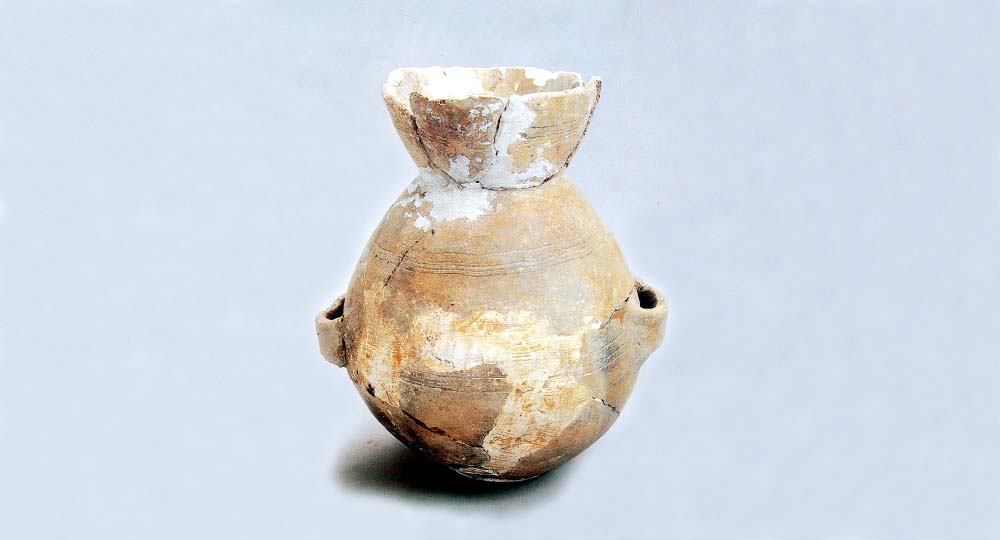 ひょうたん型のつぼは古朝鮮時代前期の代表的な土器で、その後、ムクパン里型のつぼに継承されました。早くから土器を製造して使った古朝鮮の人の創造的知恵と文化水準の高さがうかがえます。