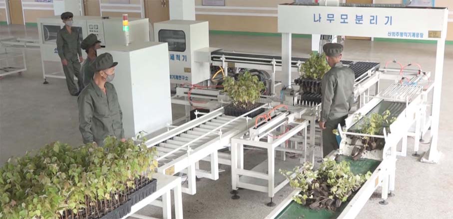 ピョンアン北道とピョンアン南道、ファンヘ北道でプラスチック羽目板の温室と種子の選別および播種場、屋外栽培場などが揃った育苗場を新築し、必要な苗木を十分生産しました。人民の皆が奮い立って多くの面積に良種の木を丹精を凝らして植えました。