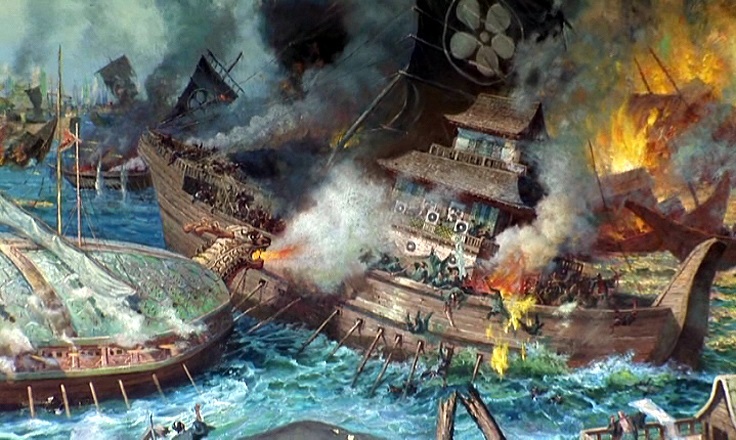 全面的反撃に移った朝鮮軍は侵略者を生きたままでは帰さないという決死の覚悟で待ち伏せと包囲陣で次から次へと敵軍を破りました。特に、朝鮮水軍はロリャンというところの沖で敵船200隻と2万人近くの敵兵を撃滅しました。ロリャン海戦の勝利は7年間の壬辰祖国戦争を勝利で飾るのに大きく寄与しました。