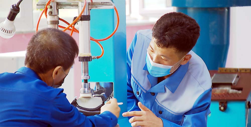 「無人運搬車を現場に取り入れる時、労働者からより便利なものにつくれないものかと言う意見を聞きました。その意見から良いアイディアが浮かんできましてね。この運搬車に自動荷降ろし装置を設置して、利便性と運搬作業の実用性をより高めました。この経験を踏まえて私たちは近頃も、シューズ用の資材を自動的に計数する機械を製作して現場に取り入れましたが、それが好評を博しています」