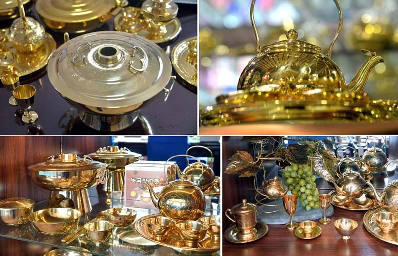 真鍮は見た目がよく、細工の効果が抜群で、人の健康にも有益です。それで、昔から朝鮮人民の日常生活に広く使われて来ました。近年、ピョンヤン・テソン宝石加工工場で生産される様々な真鍮の製品が使用者の好評を博しています。