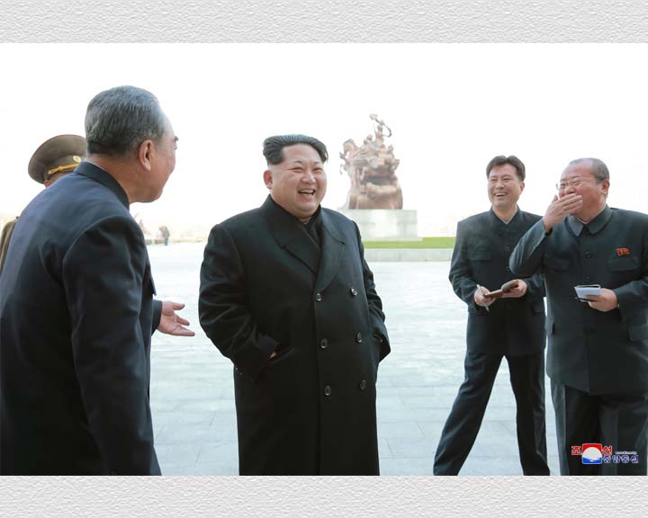 チュチェ104(2015)年11月のある日、増改築された宮殿を訪れ、前の広場で長いこと宮殿を眺めていた金正恩委員長は、宮殿が打って変わった、世界に堂々と誇るだけある、ととても喜びました。ついで、クラブ室など宮殿の各所を親心で見ました。
