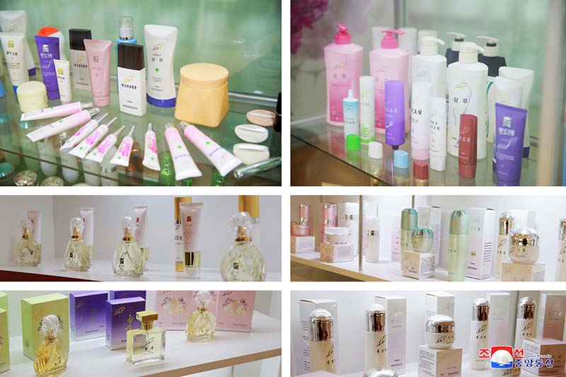 「敬愛する金正恩総書記は2回も工場を訪れまして、そのたびに強調したことがありますが、それはクオリティーアップでした。最初に訪れたのが2015年2月4日ですが、その時、総書記は世界的に名のある製品と堂々と渡り合える化粧品を生産しなければならないと言って、工場の改築とイノベーションのための方向付けをしました。その後、世界的に有名な化粧品のサンプルも工場に送りました。工場では総書記の教えどおりに改築とイノベーションに力を入れ、国内原料に頼って160種、530余りに品数を増やし、品質も改善しました。2017年10月28日、再び工場を訪れた総書記は、以前の姿を全く探し出せないほどすっかり変わった工場を見て、本当に気分が良いと言いました。この日も総書記は世界的な競争力を持つ良質の化粧品をより多く生産して、人民に送るべきだと強調しました」