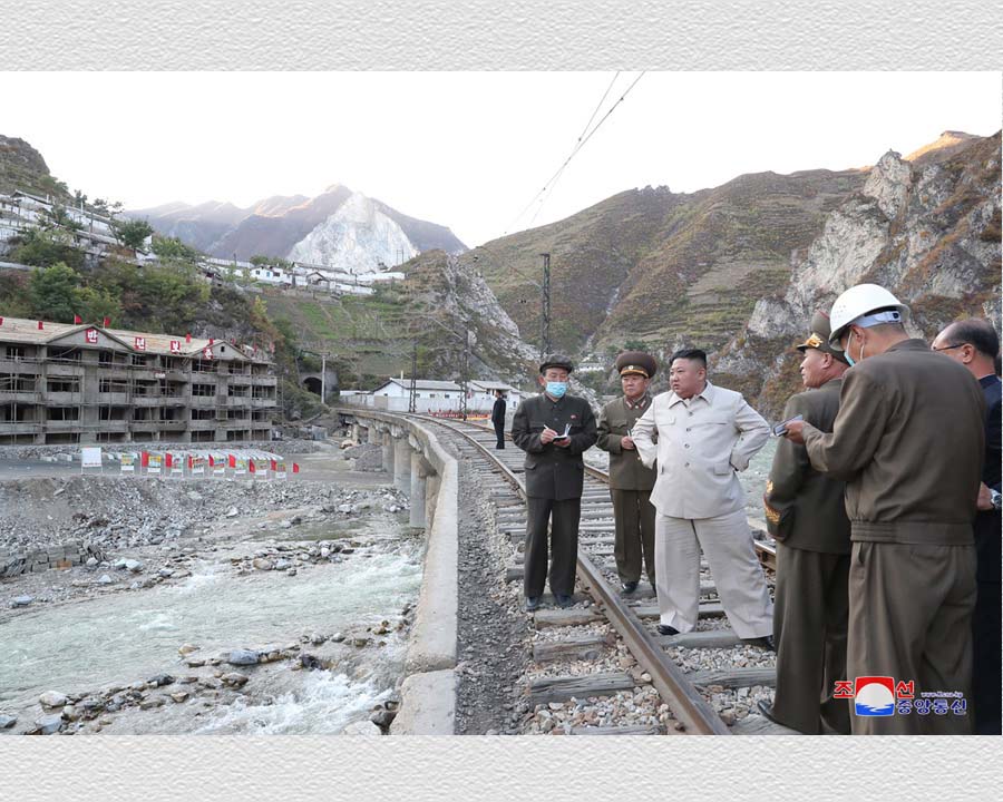 数日前は、臨時に復旧された危険千万な峡谷の線路を利用して、遠く離れたハムギョン南道*1コムドク地区*2の被害復旧現場を訪れ、その翌日はハムギョン南道の各地の復旧建設現場を見てまわった。