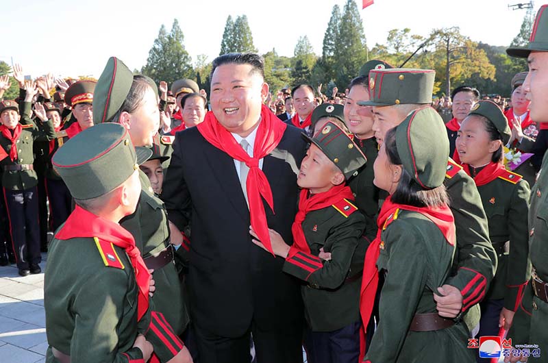 そして数日後の10月12日、マンギョンデ革命学院を訪れて、設立日を迎える学院の生徒たちを祝いました。この日、総書記は、学院の生徒たちと一緒に記念写真も撮り、週末にまた来るとの約束を残しました。