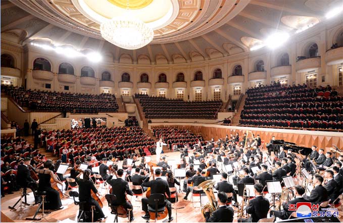 金正恩委員長はチュチェ107(2018)年1月、もとの劇場を建築美学の面で立派なライブ劇場の特性を完璧に揃えた管弦楽団専用の劇場に改築することを提案しました。そして、設計から音響学の要求を徹底的に満たすべきだとし、貫禄がある設計チームと強力な建設チームを編制しました。