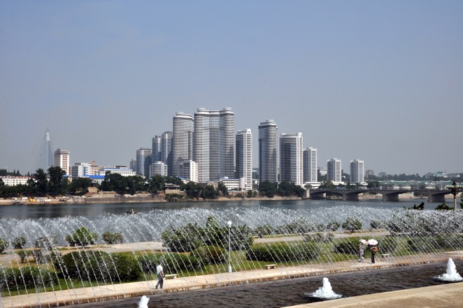 今、朝鮮の建設分野で飛躍が遂げられています。近年、朝鮮では毎年、ニュータウンがひとつずつ建てられ、人民生活向上のための施設も多数造られました。これは建設の繁栄期を開いた敬愛する最高指導者金正恩元帥の正しい導きによるものです。