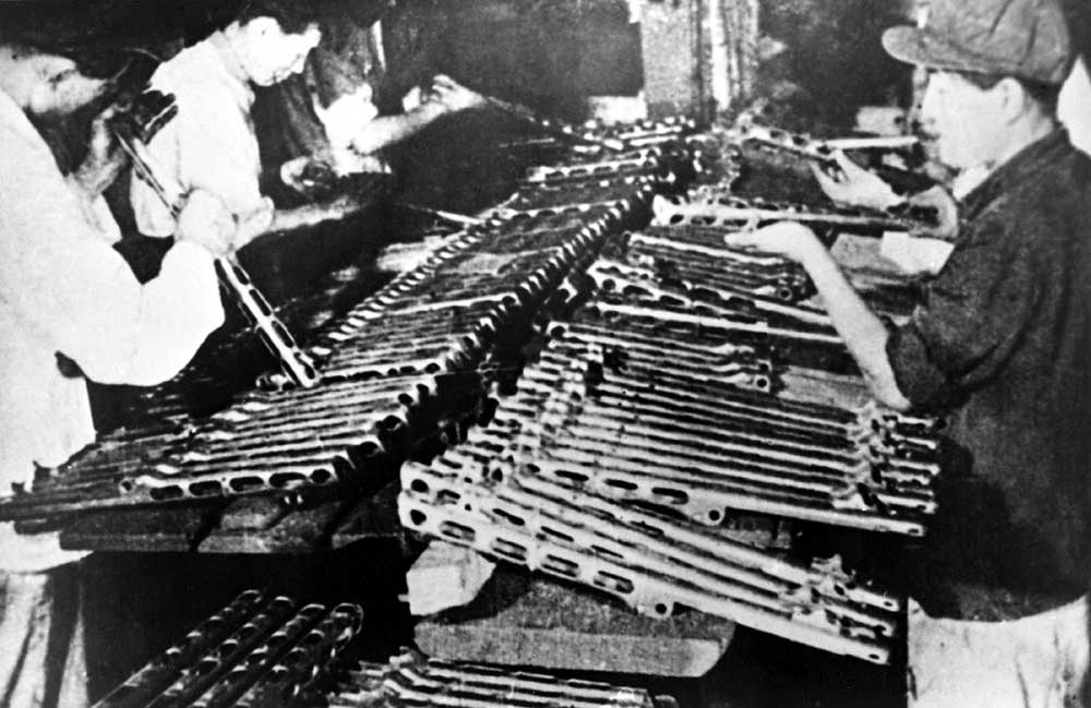「金日成主席は戦時の生産で何よりも、兵器と軍需品の生産を増やすことに人民みなを奮起させました。主席は戦争の開始と共にすぐ、国の経済を戦時体制に改編する一方、戦時の生産を増やすための積極的な対策を講じました。それで必要な軍需工場が新設され、小規模な工場も国のいたるところに整えられました」
