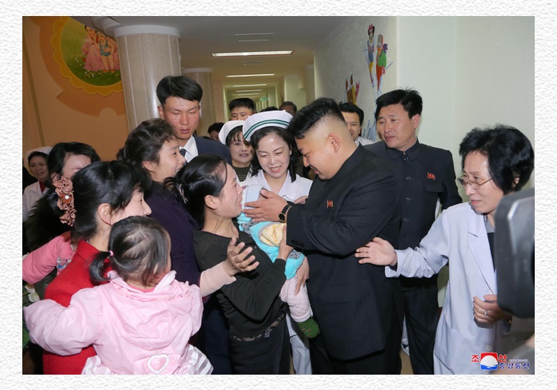 豪雨を突いて病院の建設現場を訪れた金正恩元帥は、子供たちを元気に育てたい母親の心を推し量って、世界に誇るだけある病院に建てるために腐心しました。そして、チュチェ103(2014)年3月、病院を訪れて、子供たちが病気を知らずにすくすく育つようにするためオクリュ小児病院を建てたとし、病院の管理、運営上の些細なことも即座で解決してやりました。