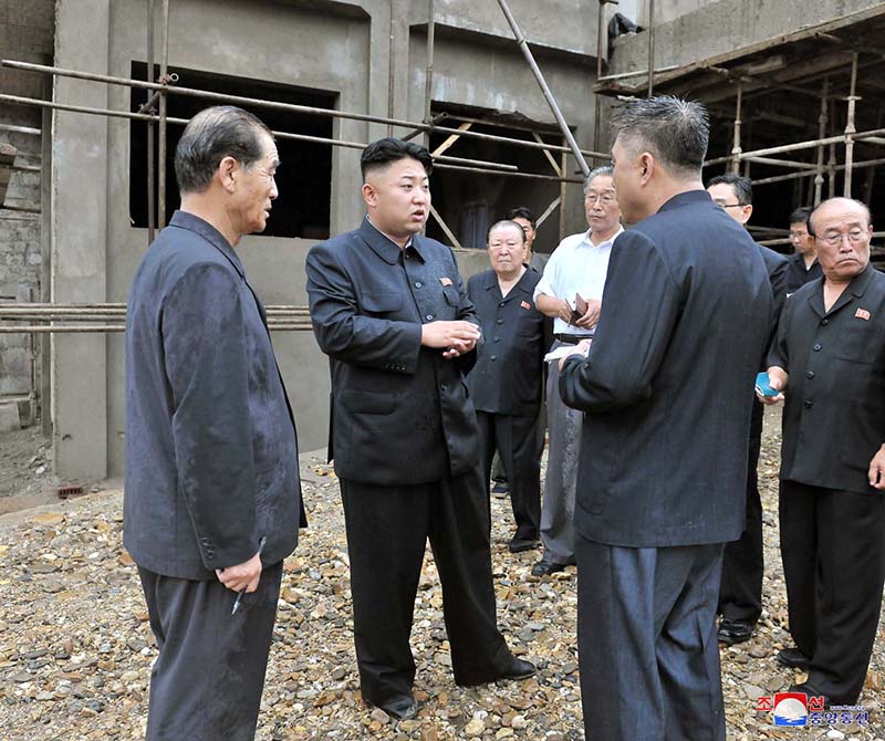チュチェ102(2013)年7月16日、敬愛する金正恩総書記が建設現場を訪れました。骨組工事が終わったばかりの建設現場は、梅雨のため、あたり一面がぬかるんでいました。けれど金正恩総書記は服がぐしょ濡れになり、泥水に革靴が浸かるのをものともせず、現場の隅々を見ました。