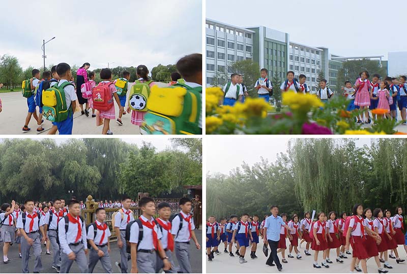 共和国の全ての学校で新学期が始まりました。水害復旧最中のピョンアン北道とチャガン道、リャンガン道の被災地の児童と生徒はピョンヤンで新学期の授業を受けています。
