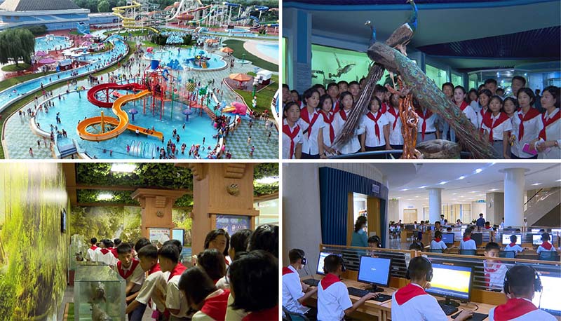 ムンス遊泳場と中央動物園、自然博物館、マンギョンデ学生少年宮殿、科学技術殿堂、マンギョンデ遊園地などなど。至る所で児童と生徒たちは未来の美しい夢を大きく広げ、国を輝かせ、さらに富強にする誓いを立てました。