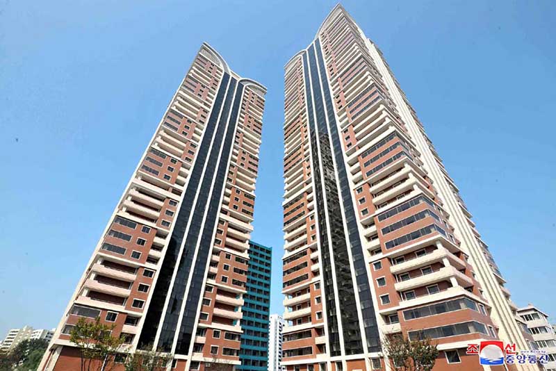 ピョンヤンのリョンフン十字路の傍に金日成総合大学の教育者住宅が建てられています。