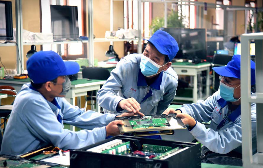 自社製品の需要が高まるほど、より立派な製品で人民の文化生活を潤わせる熱意を示しているメアリ音響社の人たちです。