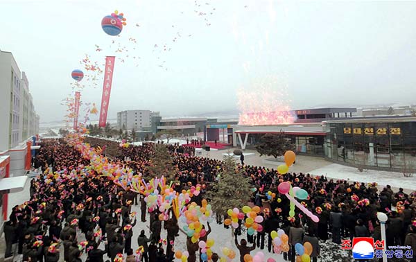 人民の福祉のための大建設現場への現地指導の足跡を無数に印していく総書記の労苦によって、着工はそのまま竣工につながりました。
