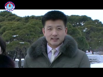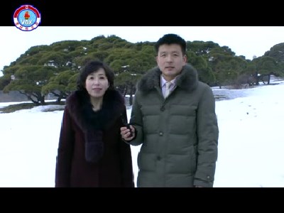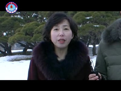 ――はいここは、偉大な金日成主席と偉大な金正日総書記の銅像がある万寿台の丘です。ご覧の通り多くの人達がここを訪れています。人民軍軍人と各階層の勤労者、青少年が訪ねて来て、人民大衆中心の朝鮮指揮社会主義制度を打ち建て、チュチェの社会主義の国を輝かせた偉大な金日成主席と偉大な金正日総書記の銅像に、心からの敬意を表しています。そしてチュチェの朝鮮の国力と尊厳を最高のものにした、敬愛する最高指導者金正恩元帥に新年の挨拶を捧げています。