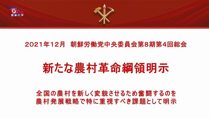 敬愛する金正恩総書記は朝鮮労働党中央委員会第8期第4回総会で、全国の農村を新しく変貌させる為奮闘するのを農村発展戦略で特に重視すべき課題として明示しました。