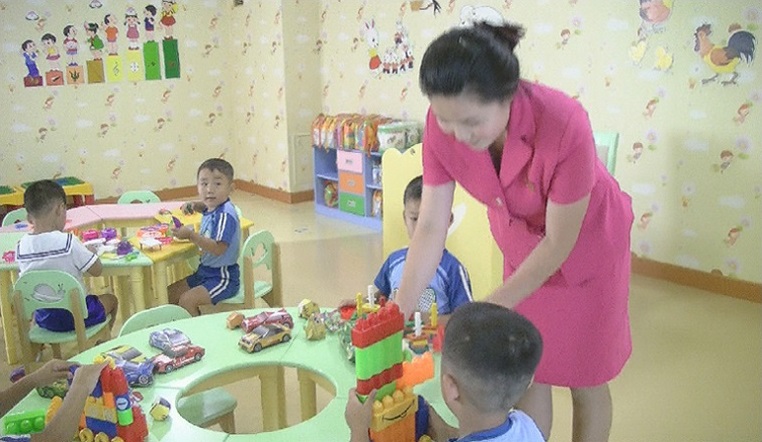 「幼児管理責任制は、保母の皆さんが一定の数の子供を引き受けて、幼稚園に上がるまで全的に責任持って保育し教育することです。この方法は保母さんが子供の保育で責任と役割をまっとうし、託児所の全てを子供の保育と教育に集中させ、子供の保育と教育の質的レベルを高める優れた方法です」