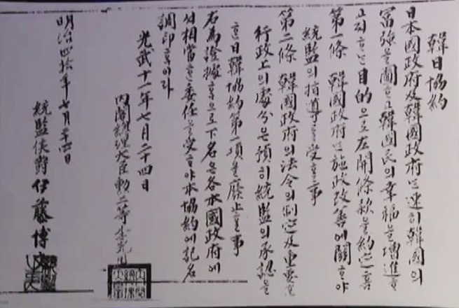 1905年11月、強盗さながらの方法で「乙巳5条約」、日本で言ういわゆる「第2次日韓協約」をでっち上げて朝鮮の外交権を強奪した日帝は朝鮮で「統監政治」を実施しました。一方、朝鮮の内政権まで奪い取る機会を狙っていました。