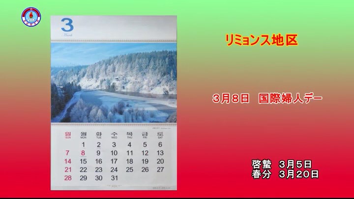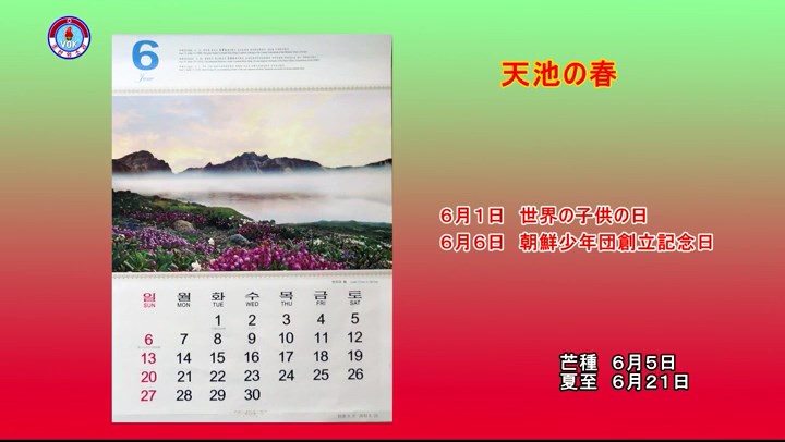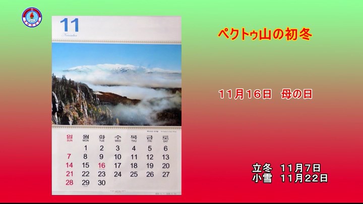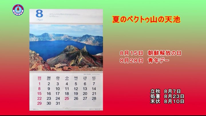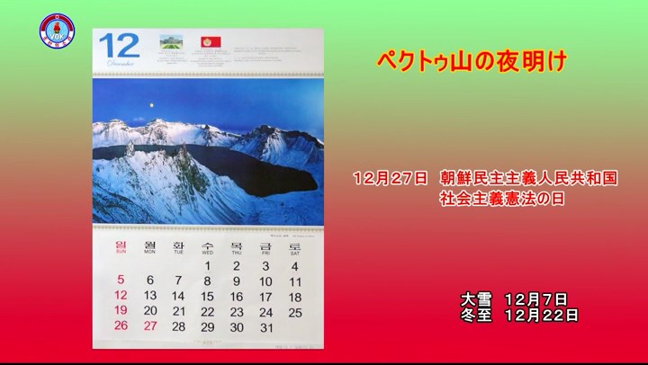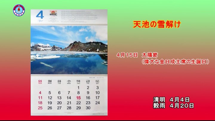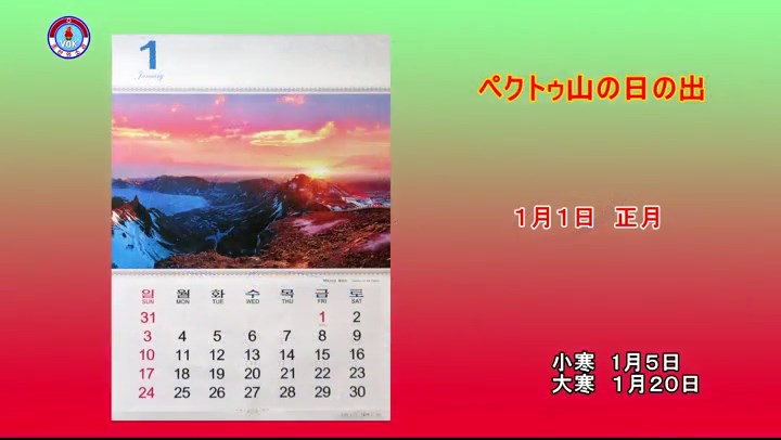 カン・ソンヒ:両江道*2三池淵市*3に高く聳える朝鮮で一番高い山である白頭山は、朝鮮人民の不屈の気概を象徴する聖なる山・父祖の山と呼ばれています。才知に長けた朝鮮人民は昔から1年を24節季に分けて暮らして来ました。視聴者の皆さんお馴染みのポケットカレンダーも印刷されました。