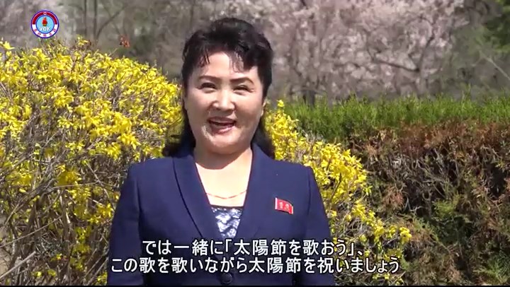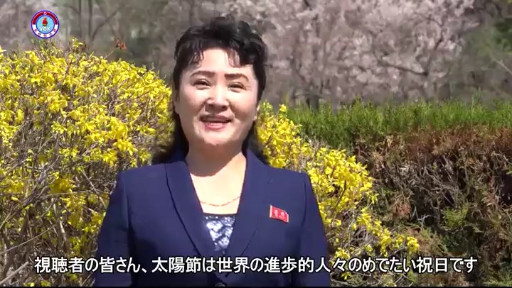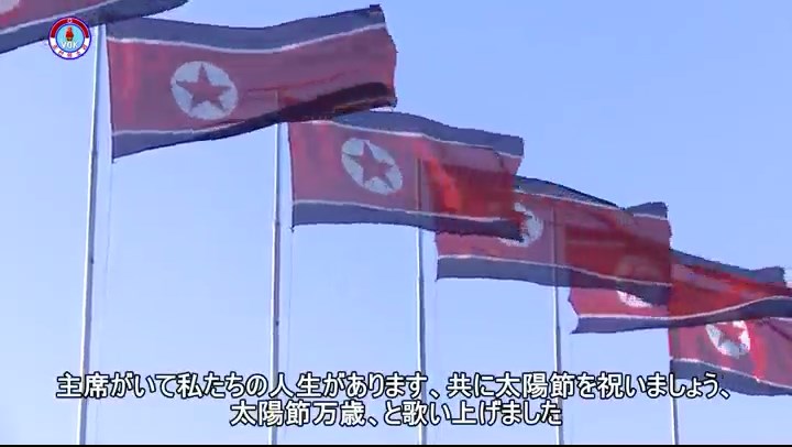 西田憲志さんは友人の皆さんの心を合わせて、今日は金日成主席が誕生した最もめでたい祝日、4月15日の太陽節、歴史のこの日があって私たちの幸せ花と咲き、めでたいこの日があって私たちは楽しいです、金日成主席は今日も私たちと共におられます、主席がいて私たちの人生があります、共に太陽節を祝いましょう、太陽節万歳、と歌い上げました。では一緒に「太陽節を歌おう」、この歌を歌いながら太陽節を祝いましょう。
