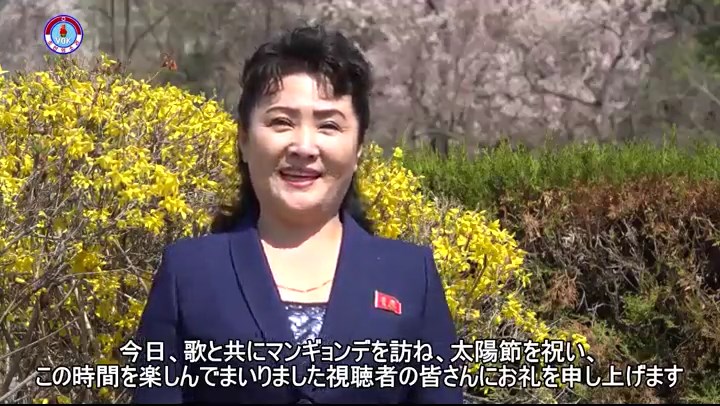 視聴者の皆さん、太陽節は世界の進歩的人々のめでたい祝日です。共に太陽節を末永く伝えていきましょう。今日、歌と共にマンギョンデを訪ね、太陽節を祝い、この時間を楽しんでまいりました視聴者の皆さんにお礼を申し上げます。