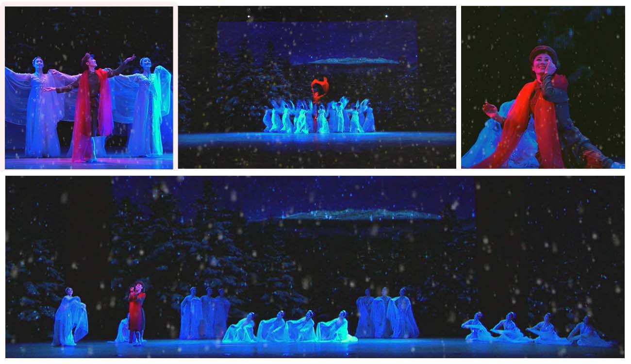 舞踊「雪が降る」は、抗日革命闘争の時の朝鮮人民革命軍の隊員の革命勝利の固い信念と不屈の精神を感銘深く見せている。