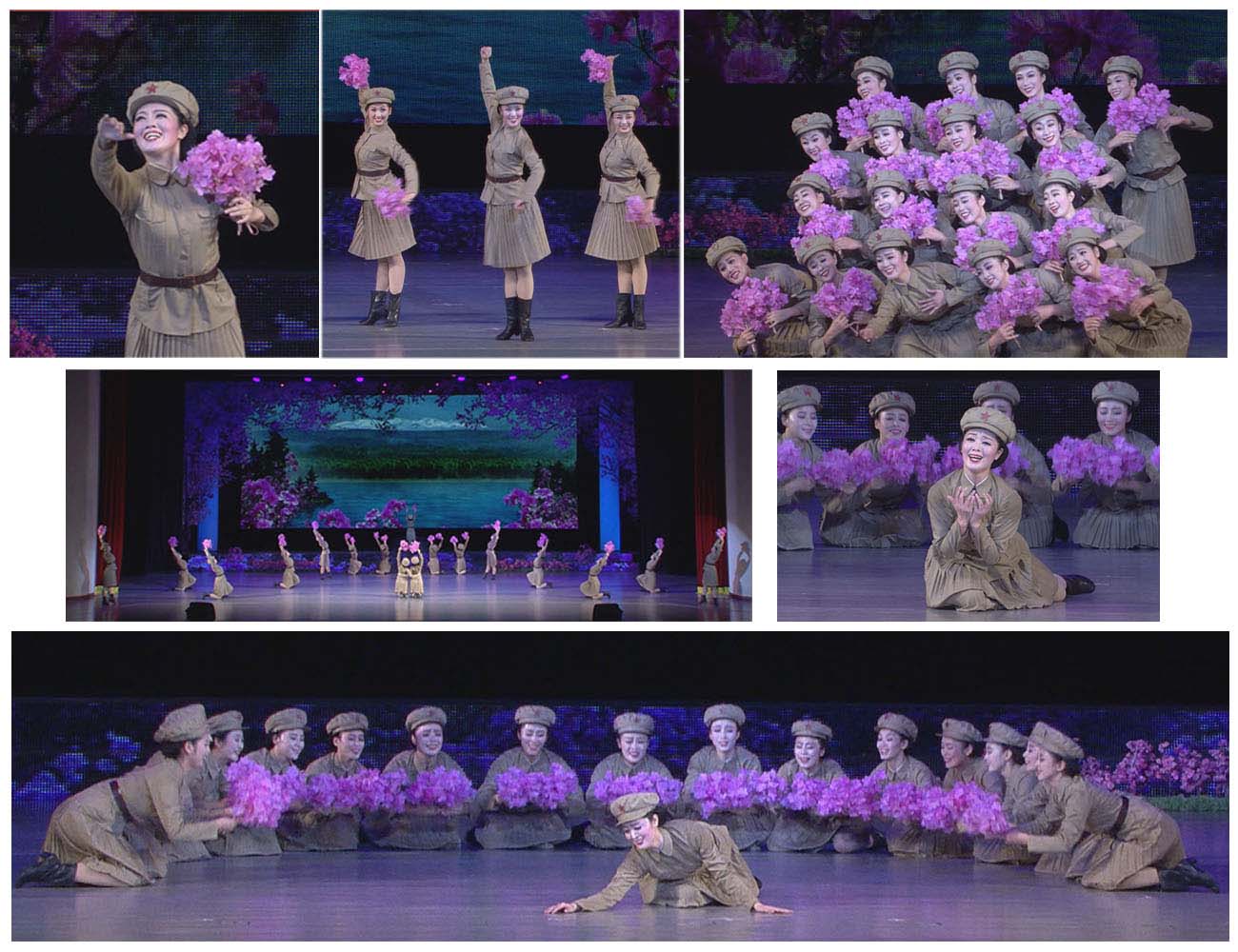 舞踊「祖国のつつじ」は、朝鮮人民革命軍の女性隊員の祖国愛と革命的楽観主義を見せている。懐かしい祖国に戻って来た女性隊員たちが感極まって、土をすくって胸に抱くシーンが印象的である。