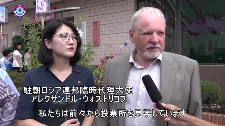「朝鮮での選挙は大きな行事となっています。私たちは前々から投票所を見学しています。ロシアの特命全権大使も最高人民会議代議員選挙の投票所を見学しました。今、あなたたちは地方人民会議代議員選挙の投票を行なっています。これはとても重要な行事です。私たちはいつも貴国人民の生活に関心を持っています。選挙がとても積極的に行われていますが、それはこの選挙が各道、市、郡の住民の生活に多大な影響を及ぼすからだと思います。選挙にみなが積極的に参加しています。新しく選ばれる代議員の活動での大きな成果を祈ります」