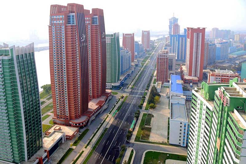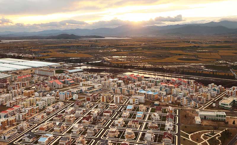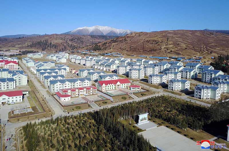 歳月を縮める建設速度でチャンジョン通り*1とミレ科学者通り*2、リョミョン通り*3、ソンファ通り*4を始めモダンなニュータウンとモニュメントを建てるようにし、農村振興の新時代、地方が変わる新時代を開いて、朝鮮式の社会主義文化の発展を遂げるようにしました。