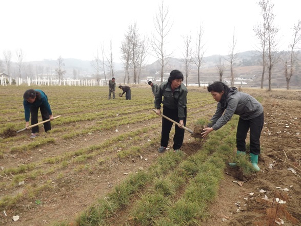 ピョンアン南道*1アンジュ市*2の森林経営所では、地元の特徴に合わせて育苗場を充実させ、多量の苗木を生産して山々に植えています。ここの森林経営所では植林のトレンドに合わせて、母体となる育苗場を見事に作りました。