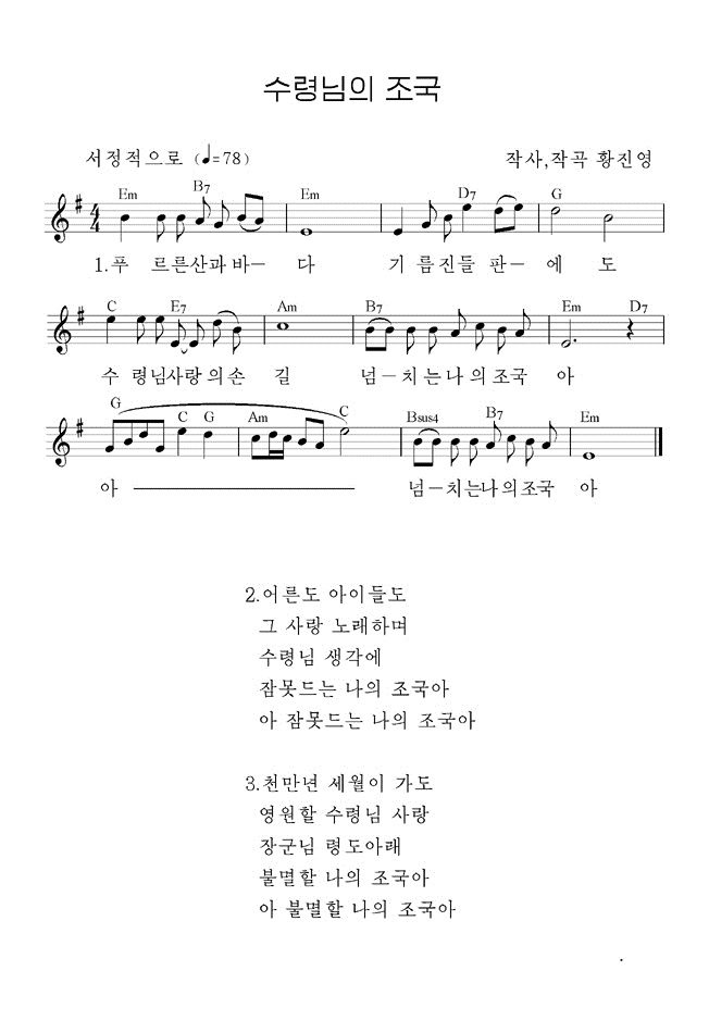 歌は、人民が主人となって甲斐ある人生を送る社会主義国を建てた主席の人民愛は永遠であり、主席をいついつまでも高く仰ぎ、偉大な金正日総書記の導きの下、代を継いで国を輝かそうとの朝鮮人民の意志を強く表しています。