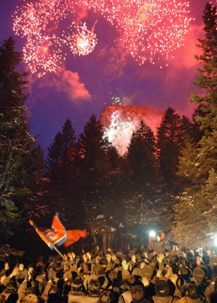 正日峰*1は朝鮮の父祖の山ペクトゥ山*2の頂にある峰で、偉大な金正日総書記の名を冠しています。峰の前に金正日総書記の生家があります。