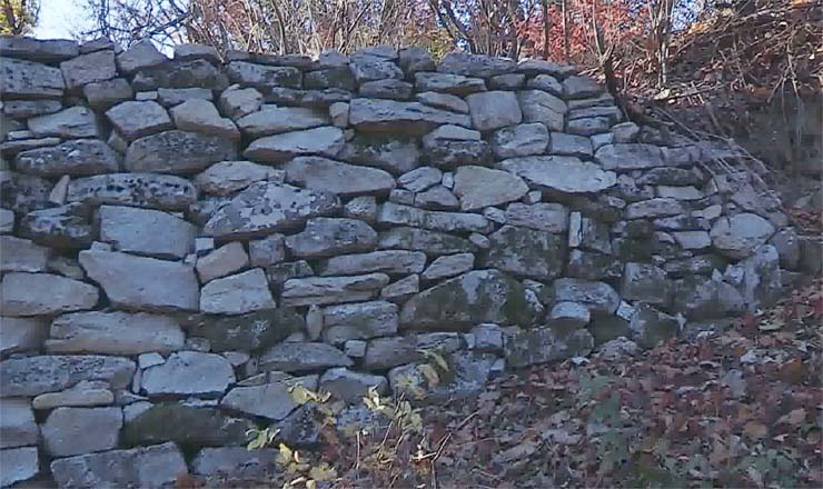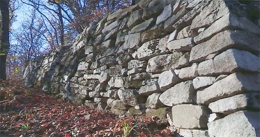 城壁は0.4~0.5メートル深さの基礎の上に花崗岩を4角錐の形に積み重ねました。城壁の高さは地形によって異なりますが、低いところで約3.5メートル、高いところで約5.2メートルです。朝鮮封建王朝時代に至り、クウォル山城は、ファンヘ南道の各地方の食料と武器を管轄する要衝の城でした。