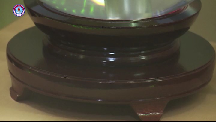 水晶内画球の直径は31.2センチメートルでスタンドの高さは10.7センチメートルです。