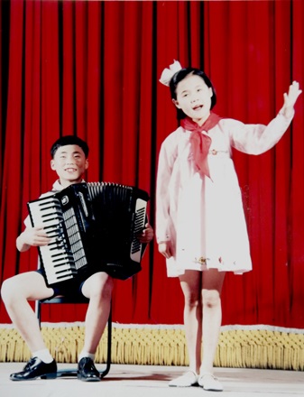 チュチェ61(1972)年の迎春公演は、10歳の私にとってこの上ない幸福と光栄の舞台でした。主席の臨席の下に行なわれたその公演で、私は独唱に出演しました。主席は、私が上手に歌を歌うとほめました。私は小躍りして喜びました。