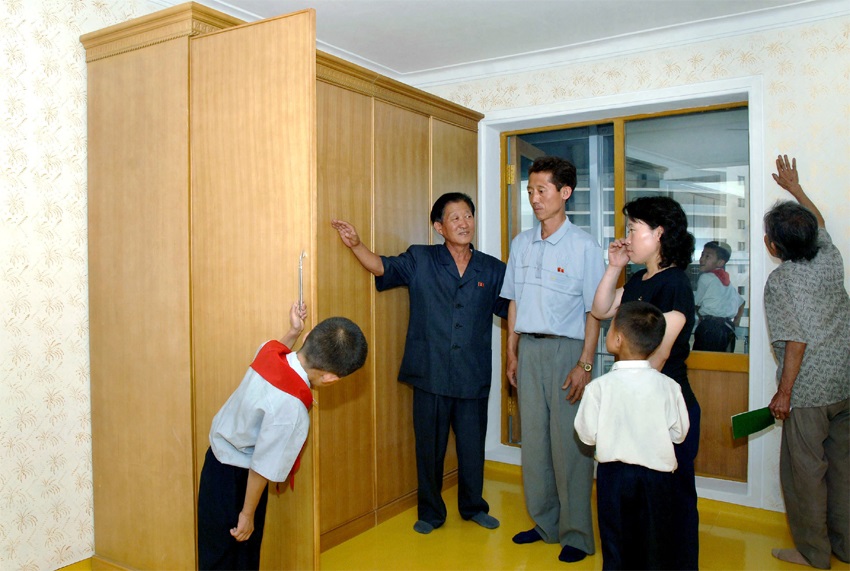 「もう10年余り過ぎましたが、今も朝鮮人民が感激の中、思い起こしている話があります。チュチェ95(2006)年3月、ある発電所の建設現場を指導した金正日総書記は浸水地域の立ち退き住民が数千戸もあるということを知って、その人たちをどうするつもりなのか聞きました。道の責任者の答えを聞いた総書記は何か満ち足りない気持ちのようでした。周りの人たちも総書記の意志どおりにならなかったと言う思いに駆られました。しばらく考えていた総書記は浸水区域の住民用の住宅を建てた後、撤去させるが、前のよりもっと立派な家を建ててあげるべきだと言いました。人民のためなら雪の日、雨の日もいとわず、また苦労も楽しみにした総書記の恩愛ははじまりはあっても終わりのない無限のものでした」