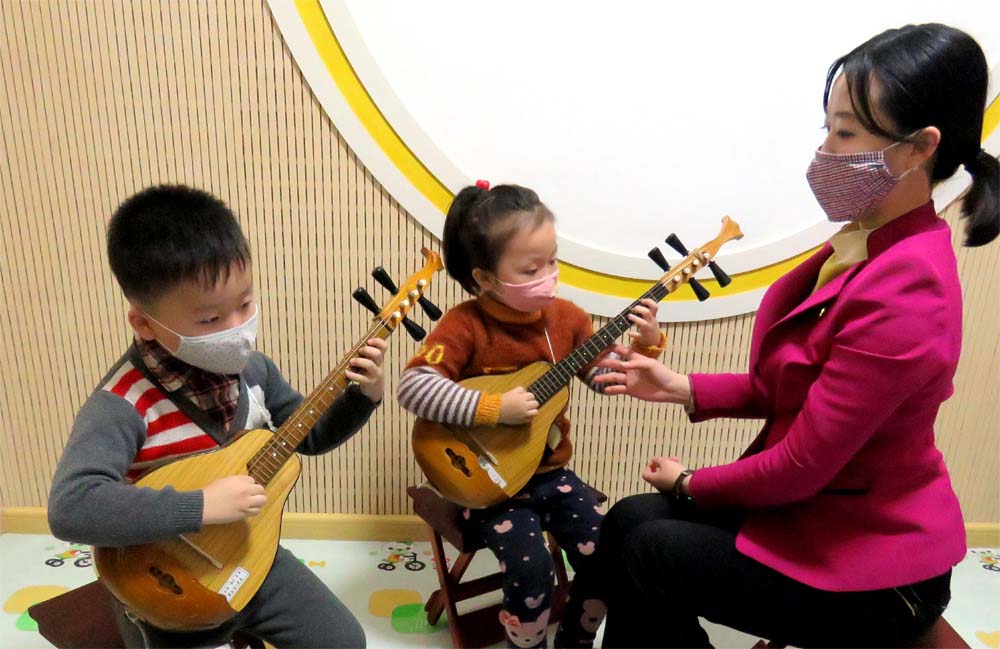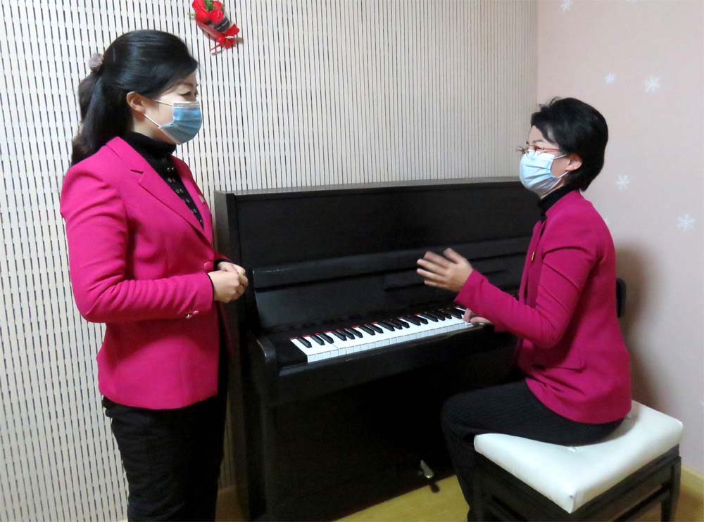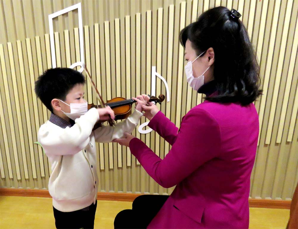 昨年、ピョンヤンの複数の幼稚園に音楽専門家の後進を育成する音楽クラスが増設され、早期音楽教育をさらに強める条件が整えられました。その結果、音楽に才能のある子供をより多く見つけ出して、科学的で系統的な早期教育を行うのが可能になりました。テドンガン区域*1トンムン第1幼稚園*2にも早期教育のための音楽クラスが新設されました。ピアノ、バイオリン、オウングム、カヤグム、チェロなどの楽器を教えています。