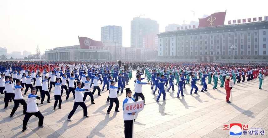 今までと同じく、大衆スポーツは年初めから活発な様相を呈しています。ピョンヤンと各道、市、郡、協同農場の勤労者と青少年は、喜びと楽観に満ちて、集団競走と健康テコンドー、大衆リズム体操をはじめ色々な大衆スポーツを行っています。