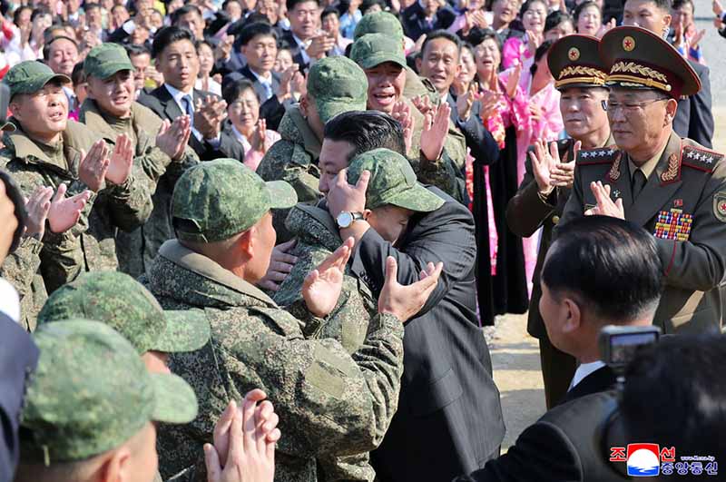 金正恩総書記は、着工式に参加した海外軍事作戦参戦軍人たちと対面し、愛の大きな懐に温かく抱きながら健康を回復した彼らを力強く激励した。