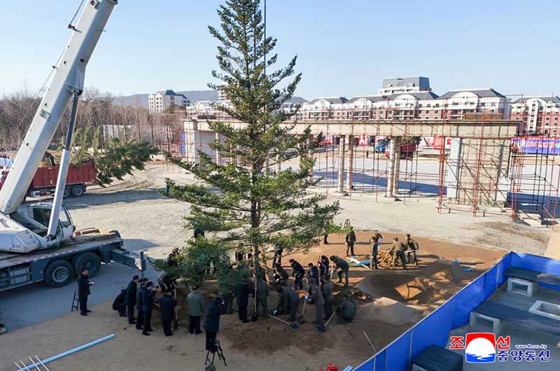 金正恩総書記が建設の着工を記念して党と政府、武力機関の指導幹部と共に鍬入れを行った。