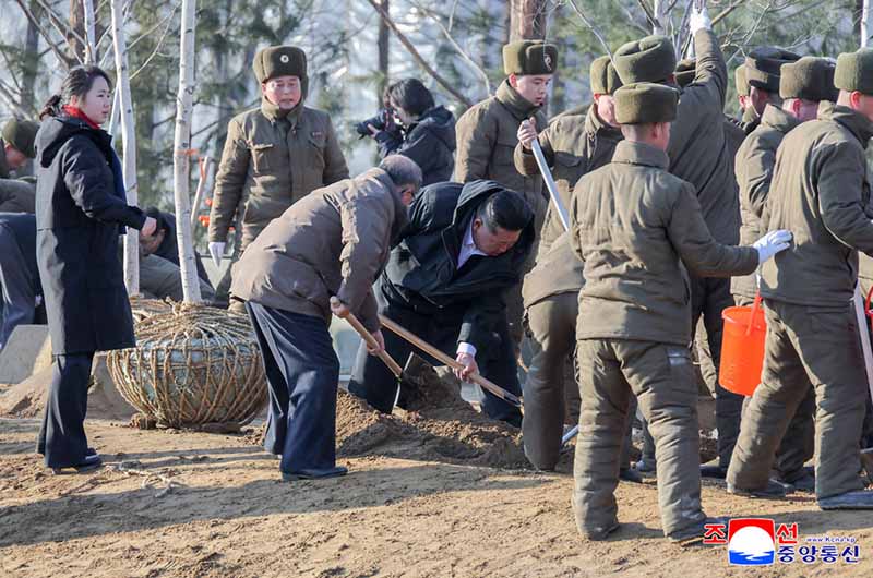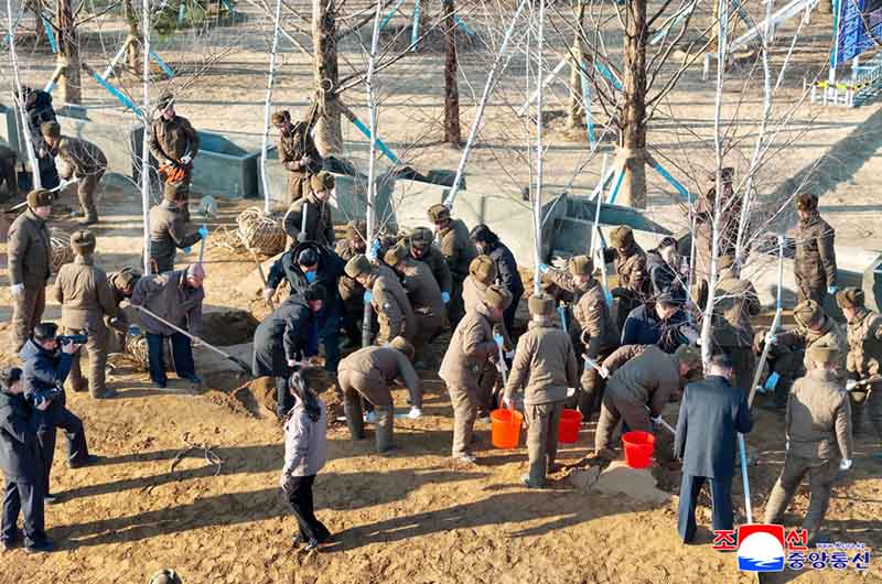 金正恩総書記は、海外軍事作戦戦闘偉勲記念館に根を下ろす一本の木、一本の草にも栄えあるわが国家の不滅さと無窮の繁栄を念願し、二つとない生命をためらわずにささげて戦った英雄戦士らに対するわが人民の限りない恭敬と崇高な道徳・信義が宿るようにすべきであると述べ、軍人建設者と共に長時間植樹を行った。