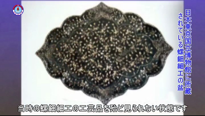 「螺鈿細工の経箱だけを見ましても、もともとコリョ、高麗時代に大蔵経を入れる箱として製作されたものでしたが装飾が華やかなことで、王宮に使える女性の貴重品や封建官吏の文書入れとして愛用されて来ました。しかし、日本侵略者が朝鮮から螺鈿工芸品を略奪してアメリカや欧州にまで売り払ったため、現在朝鮮で当時の螺鈿細工の工芸品を殆ど見られない状態です」