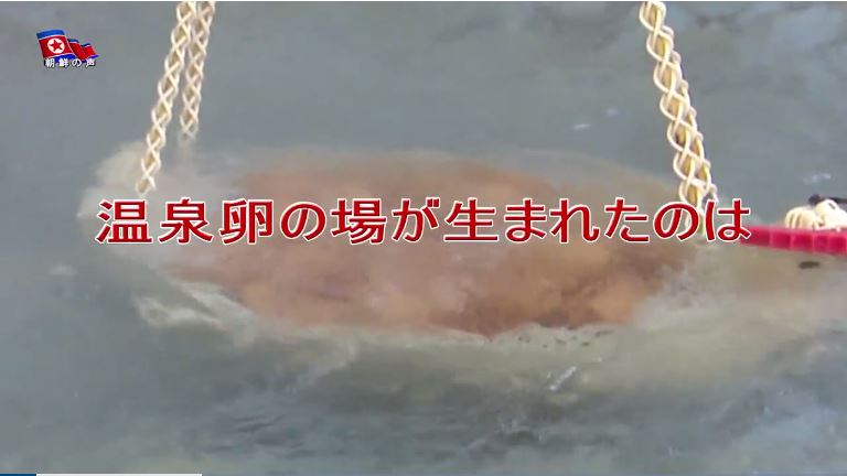 随行した一人が卵を温泉水の中に浸けるのを見た総書記は隣の人に「卵を茹でるのに何分掛かるか?」と聞きました。