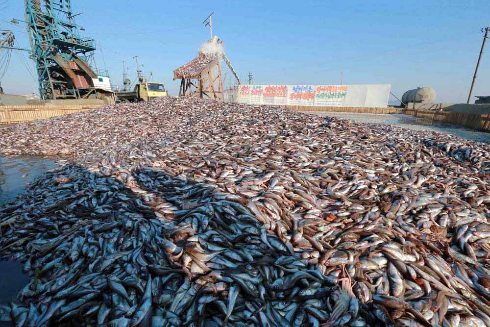 魚に混じって流れ落ちる海水があちこちに飛び散って服の裾に染み、床に流れる水が革靴を濡らしましたが、総書記は終始、笑みを絶やしませんでした。どんなに素敵な眺めだろう、積もった疲れがすっかり取れるようだと言って、総書記は「大漁の歌」の一くだりを口ずさみました。