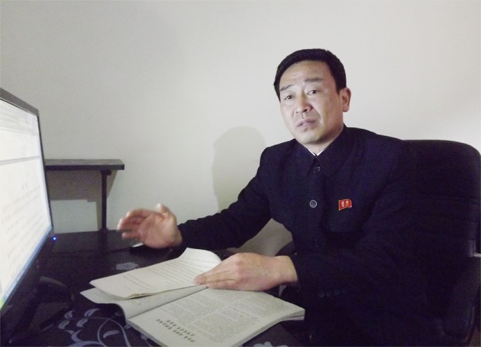 「私はファンヘ製鉄連合企業所に行って赤みがかった夕焼けの中に降る雪を見て、国内の無煙炭、自分のもので染められた赤い雪だなと思いました。赤い雪、これは主席と総書記、元帥への限りない衷情の念を持って仕事に励む企業所の労働者たちの胸に沸き返る血潮であり、衷情の結晶なのです。それで赤い雪はほかならぬチュチェ鉄だという発想をし、これをそのままテーマにしたのです」