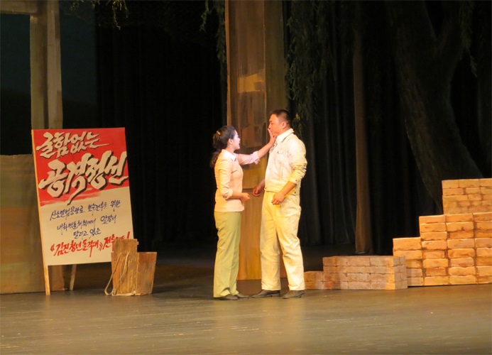 演劇は、指導者の遺訓を実行し、党の政策を守る意志と自力自強の精神を持って、国内の原料と燃料に依拠する鉄、チュチェ鉄の生産システムを確立し、党の指導に鋼鉄の増産で答えているファンヘ製鉄連合企業所の労働者たちの不屈の精神力と奮闘振りをリアルに見せています。国の繁栄のためにファンヘ製鉄連合企業所の労働者たちが夜を日に次いで行なう溶銑作業で企業所の周りは赤く見えます。そのため雪も赤みを帯びています。