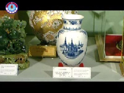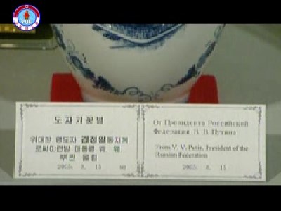 焼き物の花瓶は偉大な金正日総書記に、チュチェ94年(2005)8月15日、ロシア連邦ウラジーミル・プーチン大統領から贈られたものです。